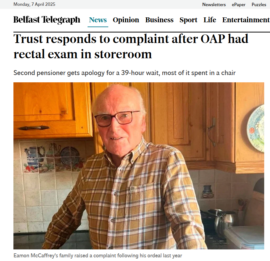 Following the ordeal, Mr McCaffrey’s family lodged a complaint with the Western Trust, and now — more than a year on — they have received a response.
